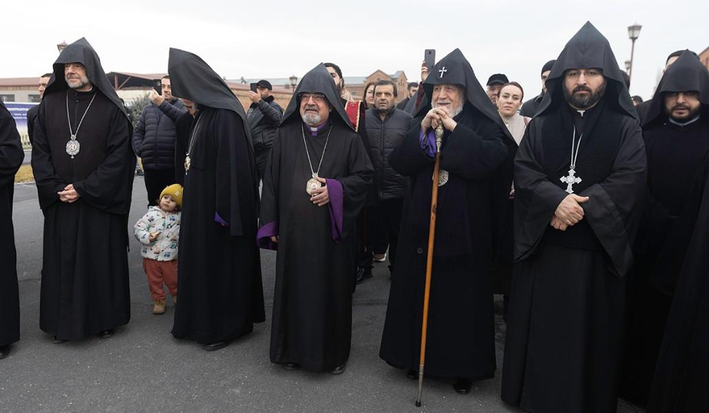 Մայր տաճարի բակում Վեհափառ Հայրապետի ձեռամբ վառվեց Տեառնընդառաջի խարույկը (տեսանյութ)