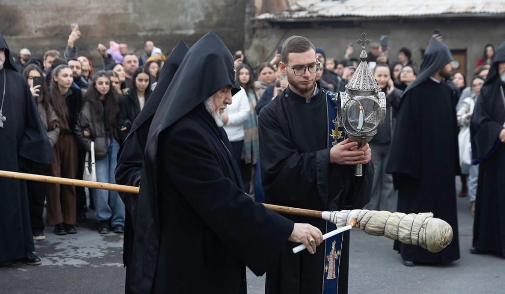 Այնուհետև «Քրիստոս փառաց» տաղի ներքո Մայր Տաճարի Իջման Սուրբ Սեղանի կանթեղից վառված մոմից Նորին Սրբությունը Հիսուս Քրիստոսին խորհրդանշող կենսատու լույսը փոխանցեց ներկա հավատավոր ժողովրդին: