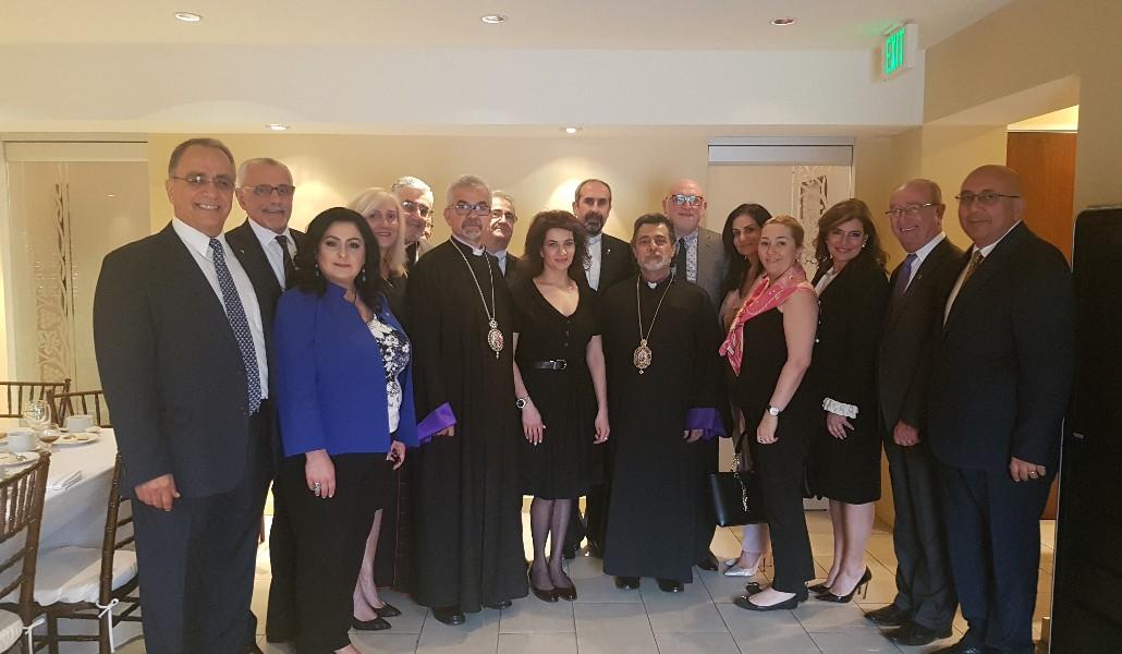 во встрече приняли участие предводитель Западной епархии Армянской Апостольской Церкви в Северной Америке архиепископ Овнан Дердерян, председатель Армянской Апостольской Церкви Джозеф Ганимян, предстоятель Армянской Апостольской Церкви архиепископ Мушег Мартиросян, предстоятель Армянской католической церкви США и Канады епископ Микаел Мурадян, член Союза евангелистских церквей Северной Америки преподобный Сероб Мкртчян, представитель Центрального комитета АРФД Западной Америки Аведик Измирлян, Председатель Центрального комитета АРФД Западной Америки Кармен Оганян, председатель Партии Рамкавар-Азатакан доктор Раффи Балян, член руководящего органа Социал-демократической партии “Гнчакян” Григор Ходанян, член руководящего состава Социал-демократической партии Гнчакян Габриел Молоян, исполнительный директор американской Евангелистской ассоциации западного побережья США Левон Филян, общий вице-президент ВАБС Синан Синаян, председатель западной епархии ВАБС Талин Якубян. На встрече по просьбе гостей госпожа Акопян представила цели двух руководимых ею фондов и кампании “Женщины во имя мира”. Были обсуждены также вопросы, касающиеся развития отношений Армения-Диаспора, образовательной и социальной сфер.