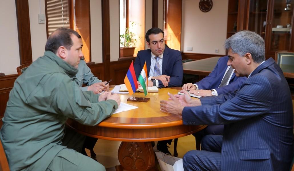 а встрече были обсуждены вопросы, касающиеся двустороннего армяно-индийского сотрудничества в области обороны. Была достигнута договоренность о развитии сотрудничества в области военного образования, подготовки кадров, миротворчества, военной медицины, а также военно-технической сфере.
