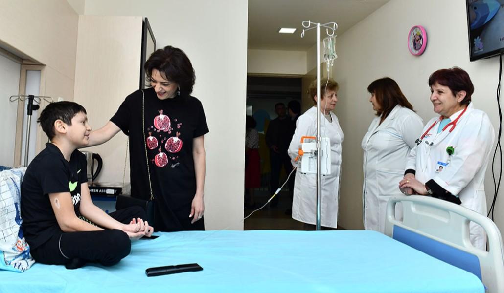 Поддержи А1+!Председатель попечительского совета благотворительных фондов «Город улыбок» и «Мой шаг», супруга премьер-министра Армении Анна Акопян 10 мая посетила Центр детской онкологии и гематологии.
