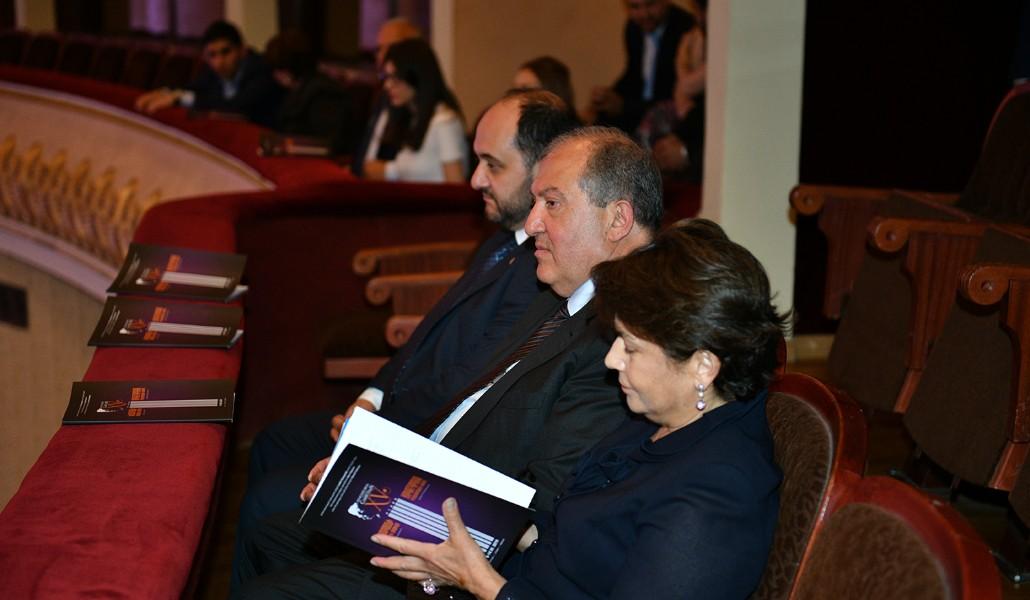 Поддержи А1+!Президент Республики Армения Армен Саркисян с супругой Нунэ Саркисян присутствовал на гала-концерте открытия 15-го Международного конкурса имени Арама Хачатряна.
