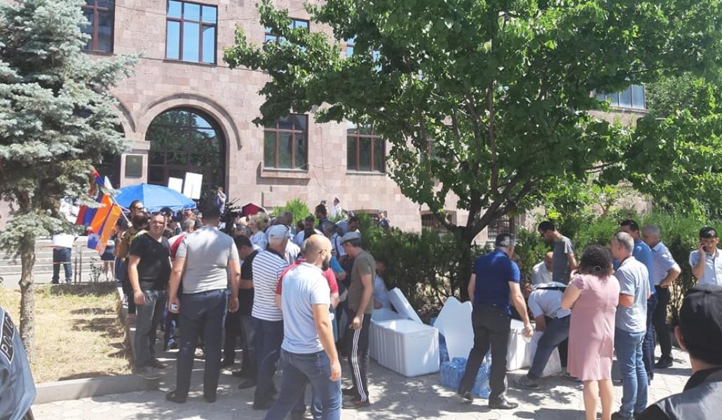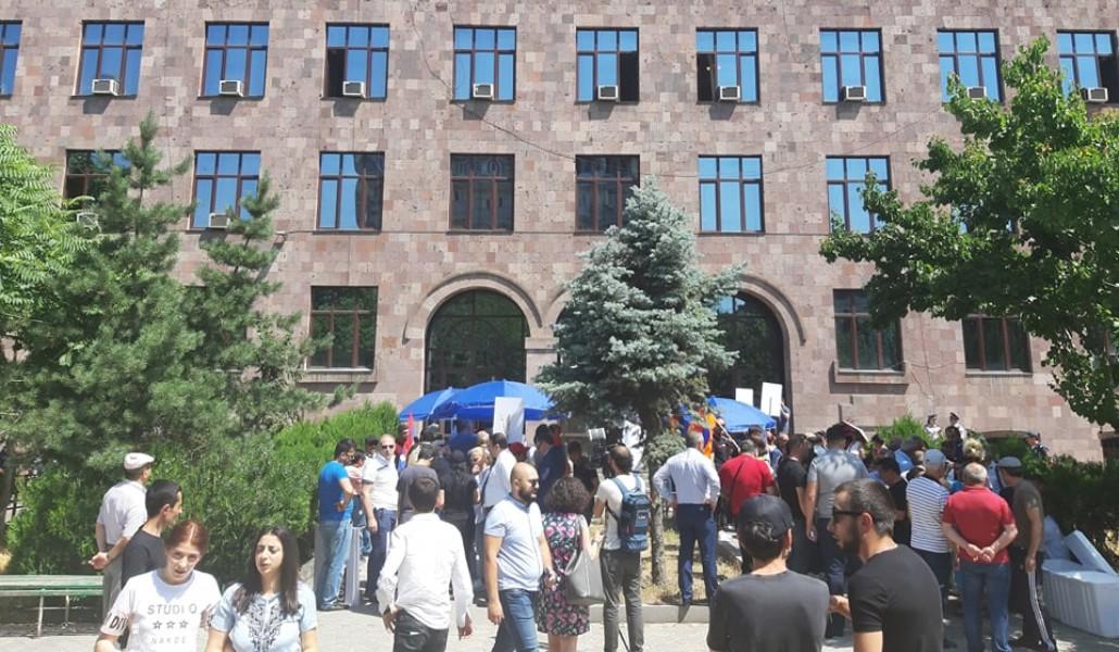 В настоящий момент во дворе суда уже многолюдно. Здесь находятся сторонники Роберта Кочаряна.