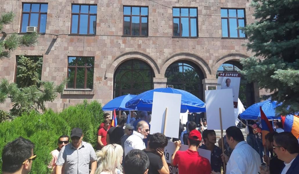 Перед судом по делу Кочаряна во дворе здания суда напряженно (видео)