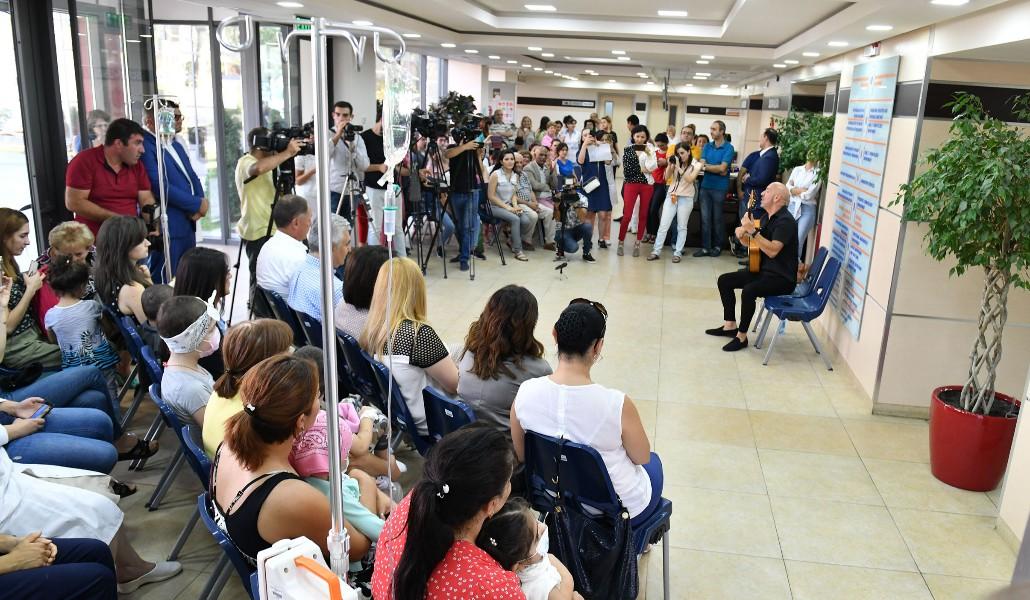 Анна Акопян в Гематологическом центре присутствовала на небольшом сольном концерте певца и гитариста группы “Джоеф Джипси Кингс Фемили”