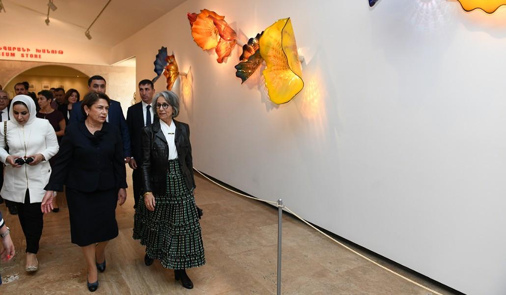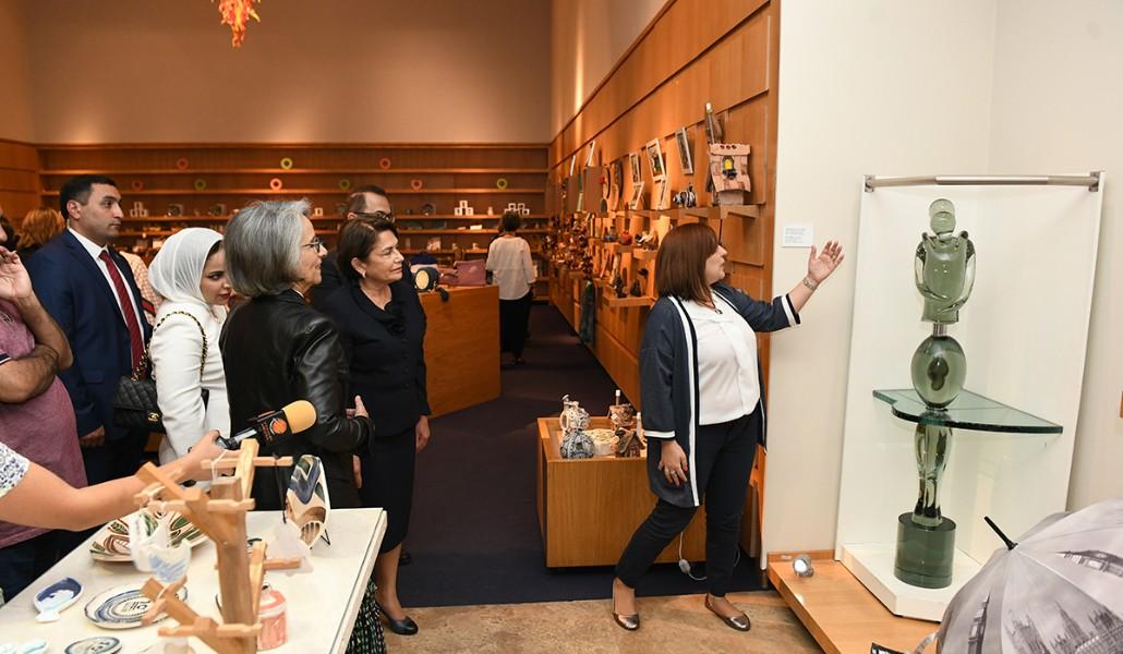 Члены делегации, возглавляемой шейхой Кувейта, вместе с Нуне Саркисян обошли выставочные залы центра, ознакомились с историей Центра.