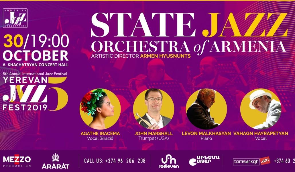 Государственный джазовый оркестр Армении, под руководством художественного руководителя и дирижера Армена Хьюсунца, также выступит в рамках ежегодного Yerevan Jazz Fest-а. Концерт оркестра состоится 30-го октября, в 19:00, в концертном зале Арам Хачатрян.