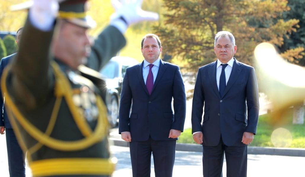 Поддержи А1+!Делегация министерства обороны России во главе с министром обороны РФ, генералом армии Сергеем Шойгу 29 октября прибыла в Армению с официальным визитом. После официальной церемонии встречи министр обороны Армении Давид Тоноян и министр обороны РФ, генерал армии Сергей Шойгу провели встречу тет-а-тет, затем состоялась встреча в расширенном формате с участием делегаций.