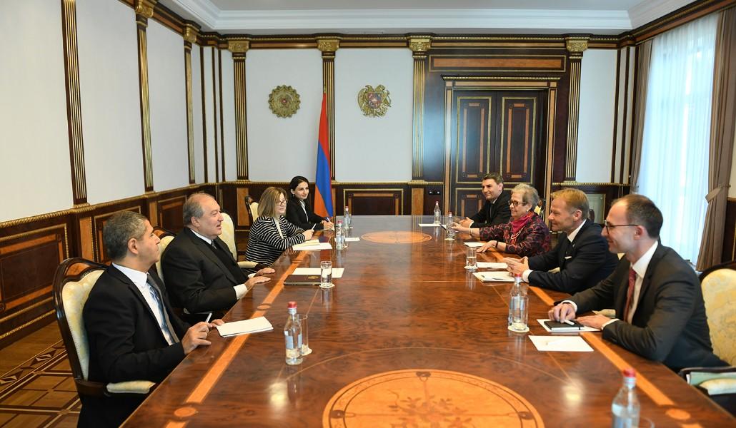 Поддержи А1+!Президент Республики Армения Армен Саркисян принял делегацию Европейского инвестиционного банка во главе с вице-президентом банка Вазилом Гудаком. Во встрече приняла участие также и руководитель делегации ЕС в Армении, посол Андреа Викторин.