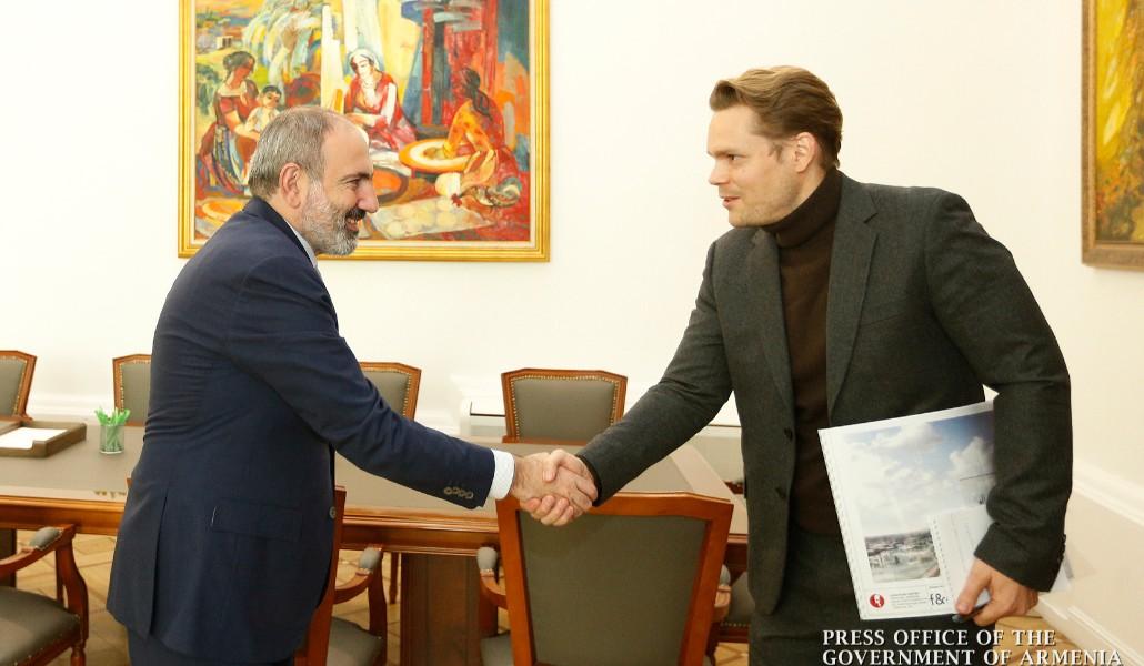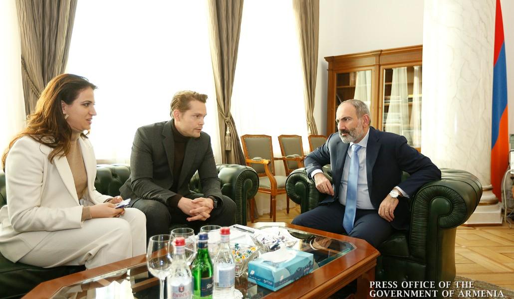 Поддержи А1+!Премьер-министр Никол Пашинян сегодня принял сына всемирно известного шансонье Шарля Азнавура, соучредителя фонда “Азнавур” Николя Азнавура и исполнительного директора фонда Кристину Саркисян.