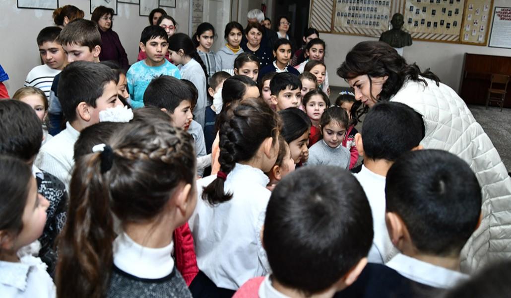 Поддержи А1+!Супруга премьер-министра РА, председатель Совета попечителей благотворительных Фондов “Мой шаг” и “City of smile / Город улыбок” Анна Акопян 28 октября посетила приграничную общину Мовсес Тавушской области. В сопровождении директора средней школы общины Мовсес Рузанны Адамян, иерея Абеля Карташяна, руководителя общины Артака Папяна, директора-учредителя организации ”Teach For Armenia” Ларисы Ованнисян Анна Акопян посетила среднюю школу общины. Станцевала традиционный армянский танец, поучаствовала в школьных играх, на курсах рисования и гончарного дела. Анна Акопян присутствовала также и на обсуждении литературного клуба школы “Зартир”, на котором члены клуба выступили в качестве юных журналистов и задали вопросы супруге премьер-министра.