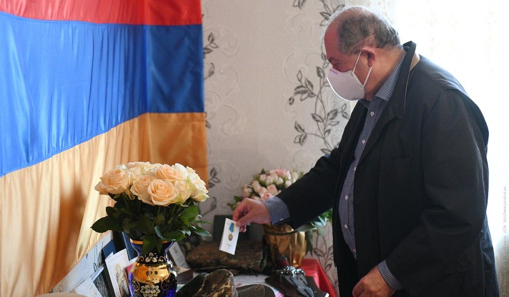 Поддержи А1+!Президент Армении Армен Саркисян сегодня посетил семью Элбакян, проживающую в общине Мармашен Ширакской области. Их сын, капитан Вооруженных сил Армении Сос Элбакян был убит несколько дней назад в северо-восточной части армяно-азербайджанской государственной границы в результате развязанных Азербайджаном военных действий.