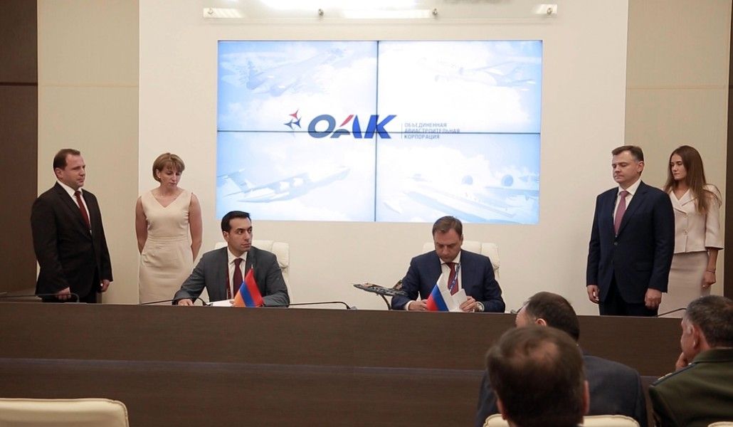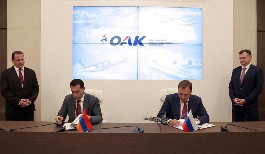 Документ подписали заместитель министра обороны Армении Макар Гамбарян и заместитель генерального директора Объединенной авиастроительной компании Илья Тарасенко.