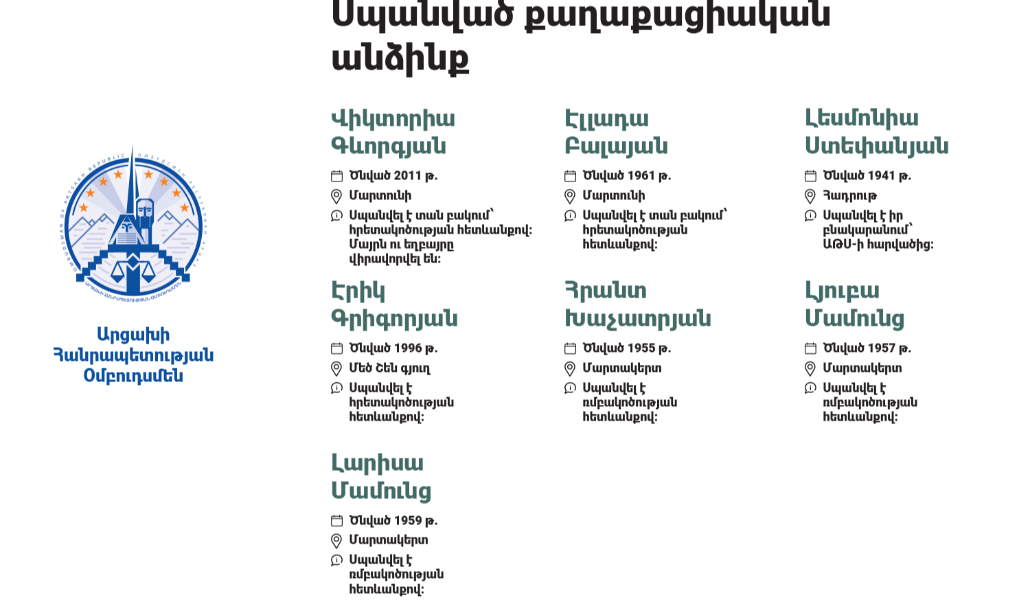 Защитника прав человека Республики Арцах продолжает сбор фактов, по итогам которого будут приведены обновленные данные.
