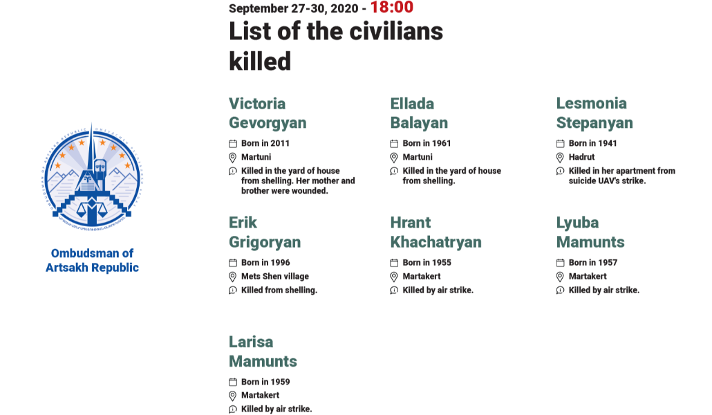 Поддержи А1+!В рамках миссии по установлению фактов, запущенной в аппарате Защитника прав человека Республики Арцах, было проведено тщательное изучение и анализ случаев посягательства азербайджанских вооруженных сил на мирное население Арцаха в период с 27.09.2020 по 30.09.2020. Результаты представлены ниже: