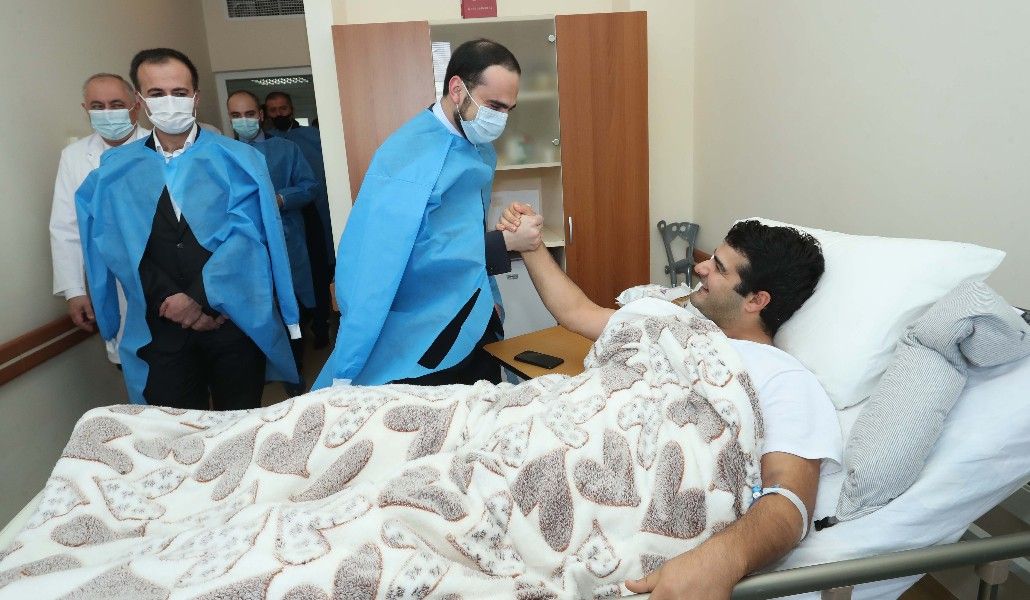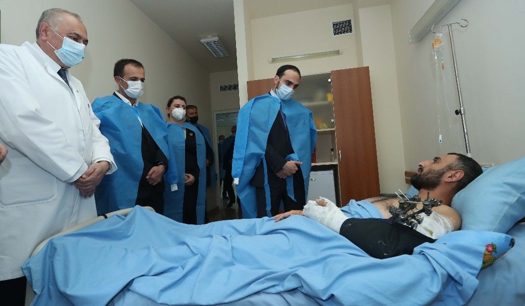 Руководители медицинских учреждений представили проделанную до сих пор работу и дальнейшие действия. В их сопровождении Тигран Авинян и Арсен Торосян ознакомились с процессом лечения, больничными условиями, а также прошлись по отделениям, пообщались с ранеными военнослужащими и поинтересовались состоянием их здоровья. Вице-премьер также посетил ответственного за его протокол, который был ранен в Шуши.