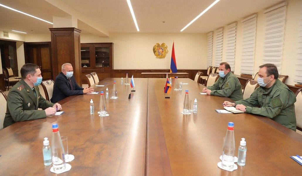 Поддержи А1+!Министр обороны Армении Давид Тоноян 19 ноября встретился с Чрезвычайным и Полномочным послом РФ в Армении Сергеем Копыркиным.