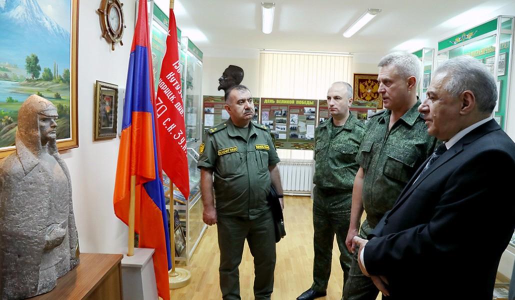 Как сообщили Арменпресс в пресс-службе МО Армении, в сопровождении начальника Пограничного управления генерал-лейтенанта Романа Голубицкого Вагаршак Арутюнян осмотрел музей пограничной службы Российской Федерации.