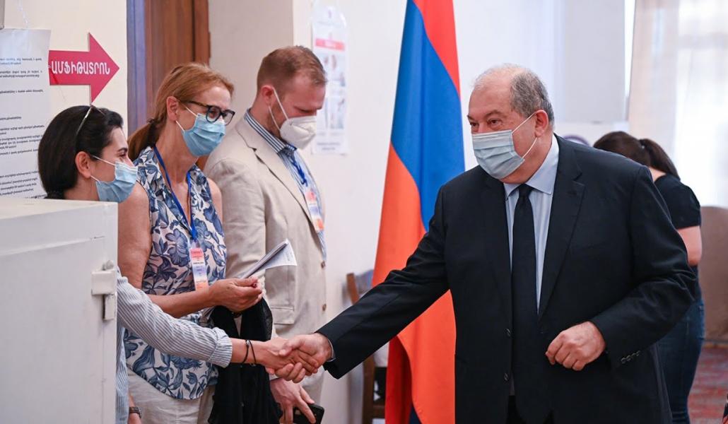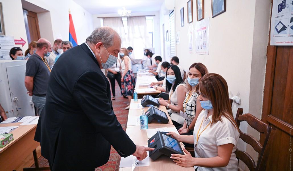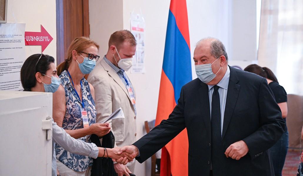 Поддержи А1+!Президент Республики Армения Армен Саргсян проголосовал на внеочередных выборах в Национальное собрание. Президент сделал свой выбор на избирательном участке, расположенном на проспекте Баграмяна 3, в Доме союза писателей.
