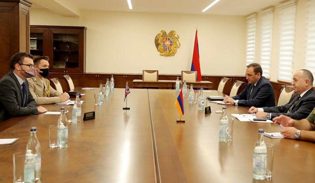 Поддержи А1+!Министр обороны Армении Аршак Карапетян принял Чрезвычайного и Полномочного посла Соединенного Королевства в Республике Армения Джона Галлагера.