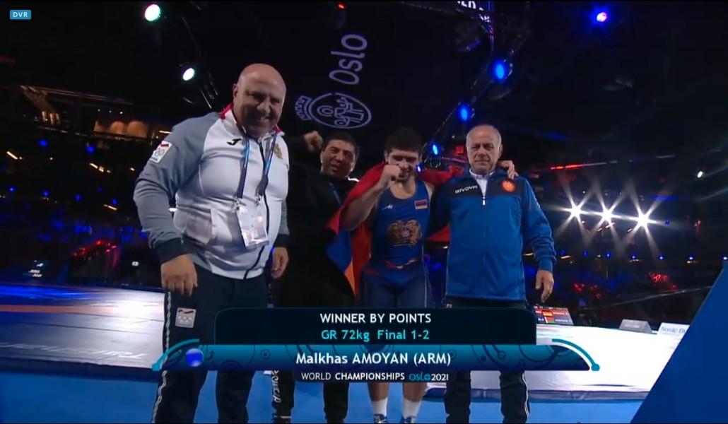Малхас Амоян в финале встретился с представителем России Сергеем Кутузовым за золотую медаль в весовой категории до 72 кг на Чемпионате мира по греко-римской борьбе в Осло, Норвегия. Армянский борец выиграл со счетом 3:1.