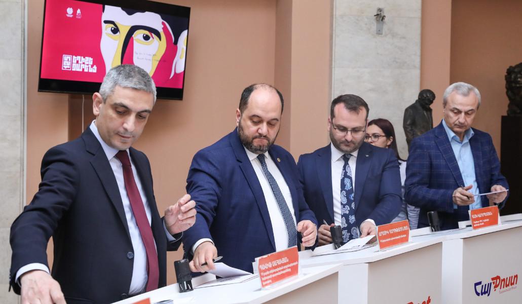 Поддержи А1+!Руководитель аппарата премьер-министра Араик Арутюнян в Концертном зале имени Арама Хачатуряна принял участие в церемонии гашения марки на тему «Великие армяне: 125-летие Егише Чаренца».
