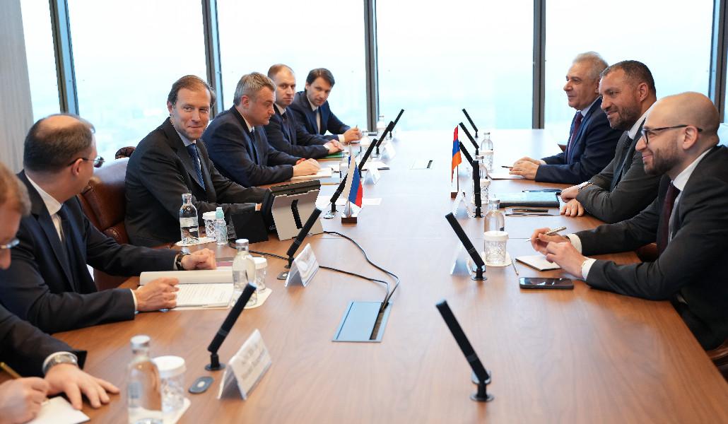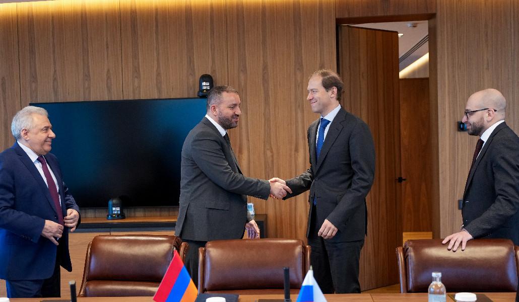 Поддержи А1+!В рамках визита в РФ министр экономики Армении Ваан Керобян и заместитель министра Нарек Терян встретились с министром промышленности и торговли Российской Федерации Денисом Мантуровым.