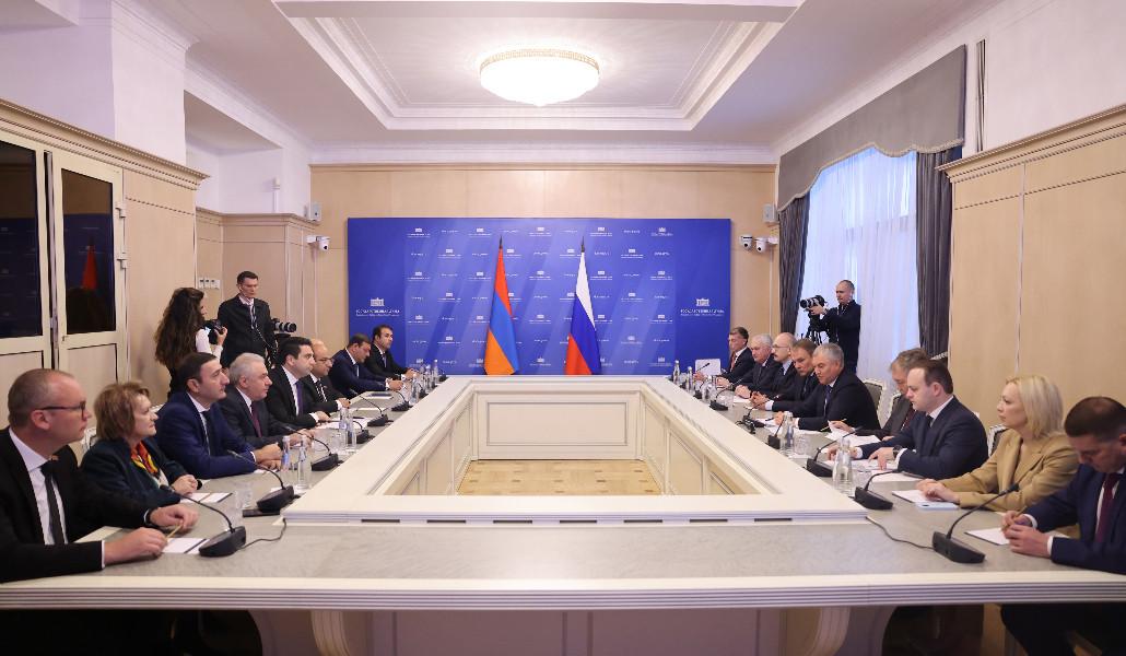 Поддержи А1+!10 октября делегацию, возглавляемую председателем НС РА Аленом Симоняном, находящуюся в Москве с трехдневным официальным визитом, принял председатель Государственной Думы Федерального собрания РФ Вячеслав Володин. Между Аленом Симоняном и Вячеславом Володиным состоялась приватная беседа, после которой последовала расширенная встреча.