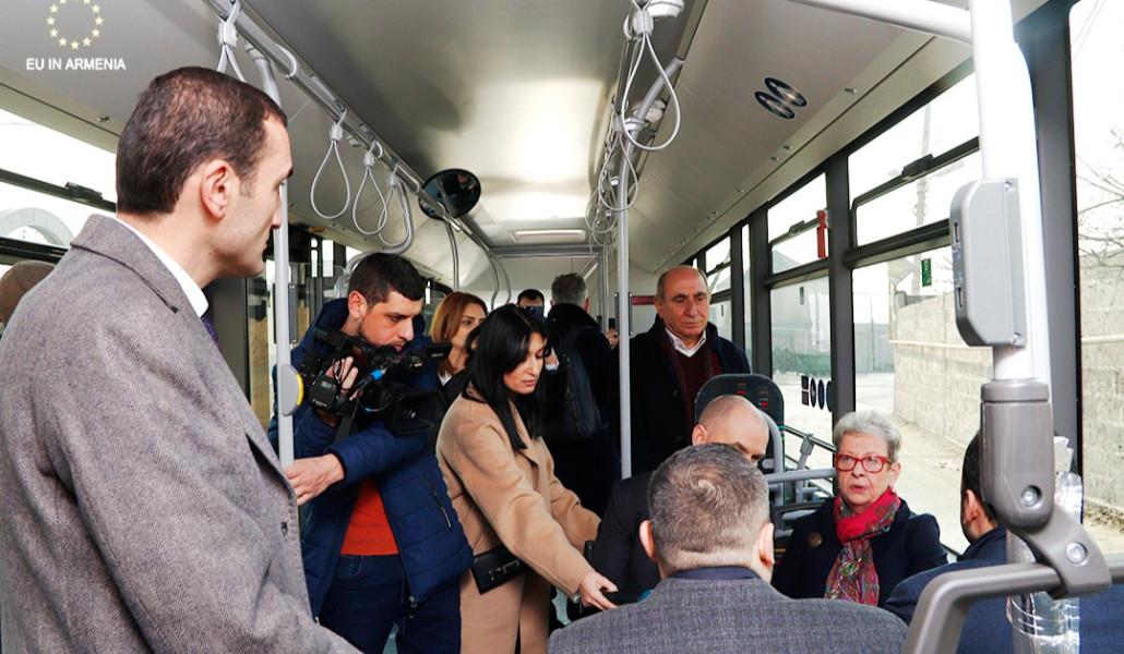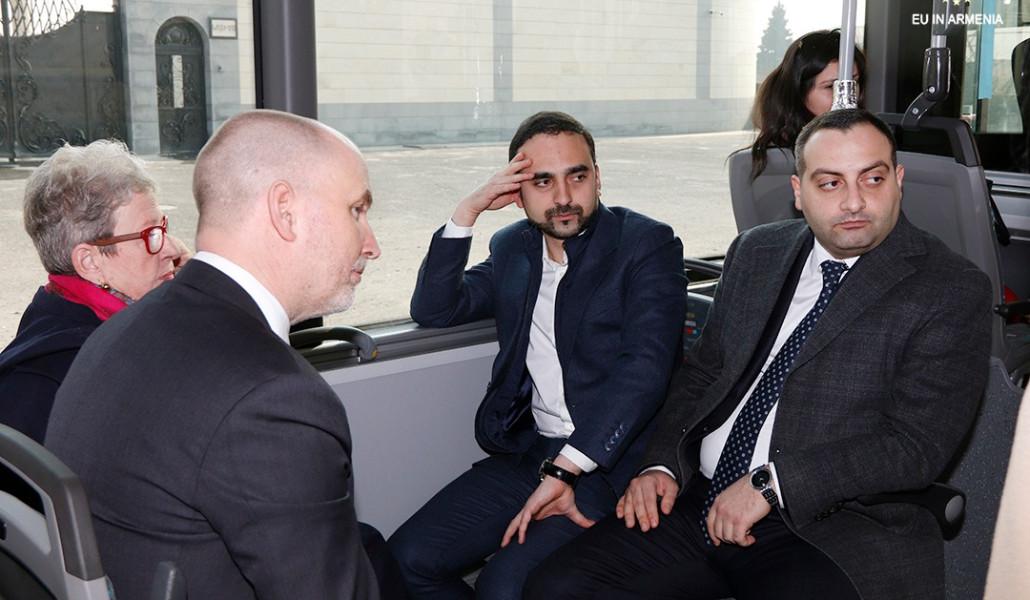 «18 января вместе с послом Европейского союза Андреа Викторин, главой ереванского представительства ЕБРР Джорджем Ахалкаци, представителем Европейской комиссии Дэвидом Калленом и первым заместителем мэра Еревана Левоном Ованнисяном мы посетили автобусный парк и проверили комфортность нового автобуса на улицах Еревана на тестовом маршруте», - отметил вице-мэр.