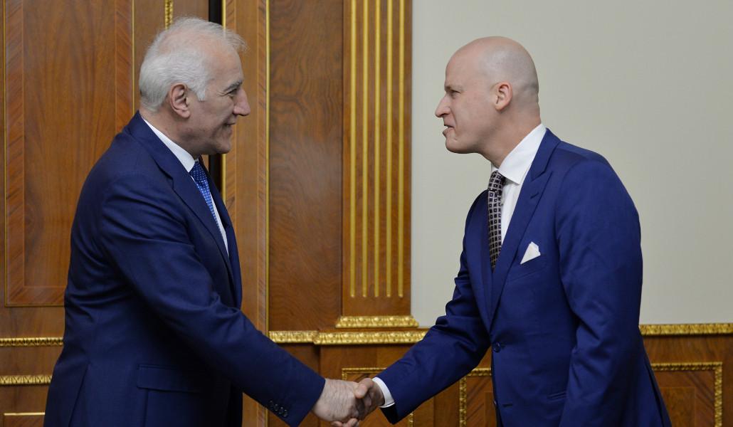 Поддержи А1+!Президент Республики Армения Ваагн Хачатурян принял генерального директора армяно-канадской компании “Агапэ” Грэма Джонсона и представителей компании Сурена Саркисова и Нерсеса Караманукяна. Компания занимается разведкой запасов нефти и газа на территории Армении.