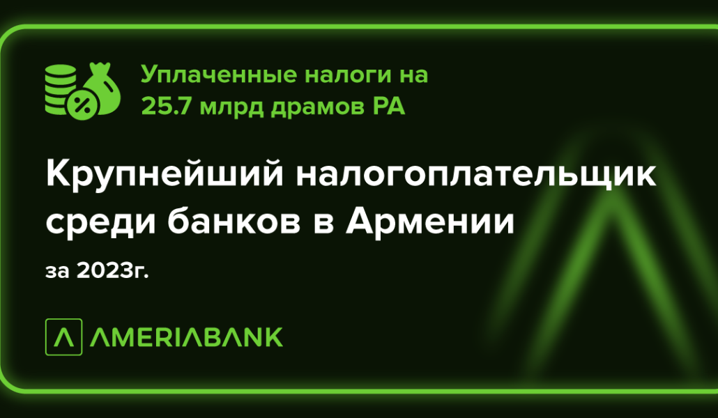 Америабанк является крупнейшим налогоплательщиком среди армянских банков уже шестой год подряд. По данным за январь-декабрь 2023г. банк перечислил в государственный бюджет налоги на общую сумму 25.7 млрд драмов РА.