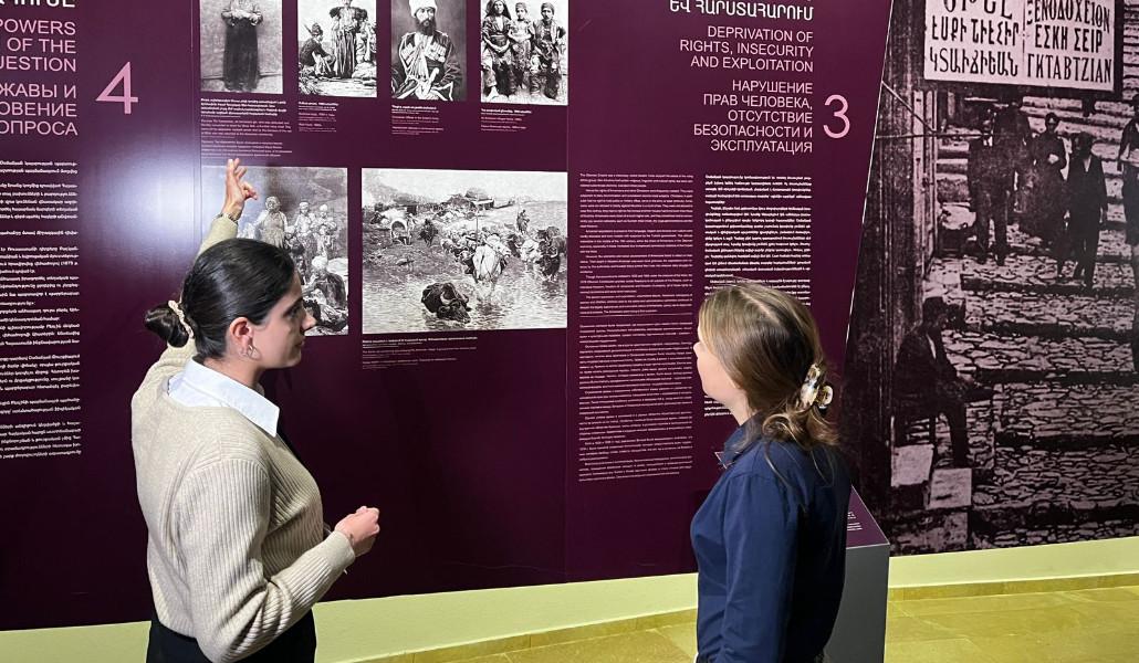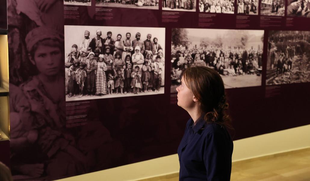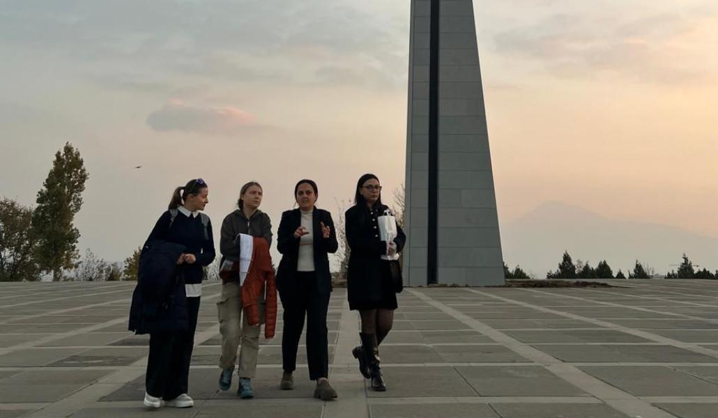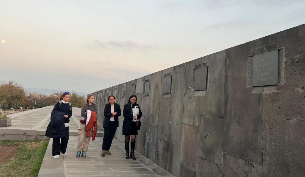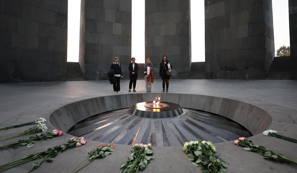 Директор МИГА также коснулась истории трех хачкаров, воздвигнутых на территории Цицернакаберда в память об армянах, погибших в резне, устроенной правительством Азербайджана в городах Сумгаит, Кировабад (Гандзак), Баку в прошлом веке, и истории пяти борцов за свободу, погибших во время Первой арцахской войны и похороненных на территории Мемориала, подчеркивая тем самым связь между произошедшим и Геноцидом армян.