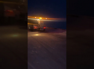 На участке Горайк-«Зангер» М-2 идёт снег. Дорогу обрабатывают солью и песком.